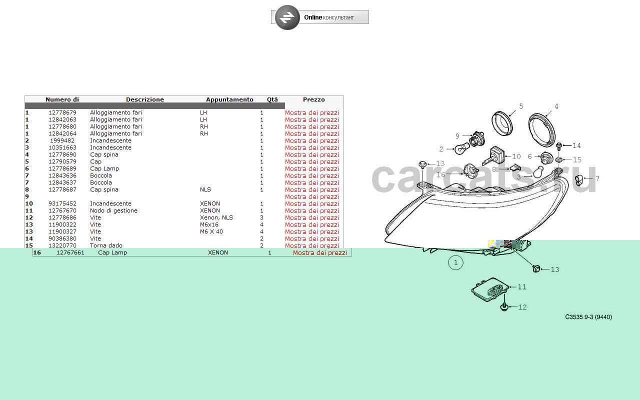 - nel faro USA sembrerebbe una comune lampadina a filamento (il part number sarebbe 1999482, ma ricercando sul web non si trova una corrispondenza, magari hanno saltato un numero sull'eppicci visto che è più corto di una cifra rispetto ai comuni "part number" Saab...ma non è detto.....