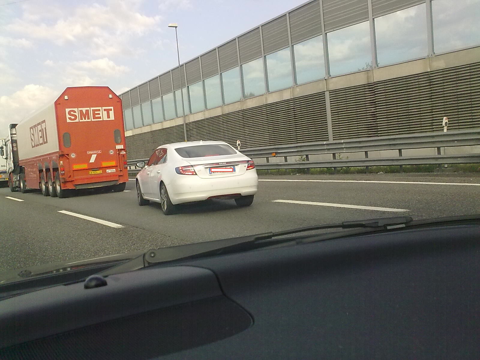 Grigia metallizzata chiara non l'avevo mai vista dal vivo, e' di un'eleganza stratosferica, stavo per sorpassare una meravigliosa 9-5 NG targata ungherese!