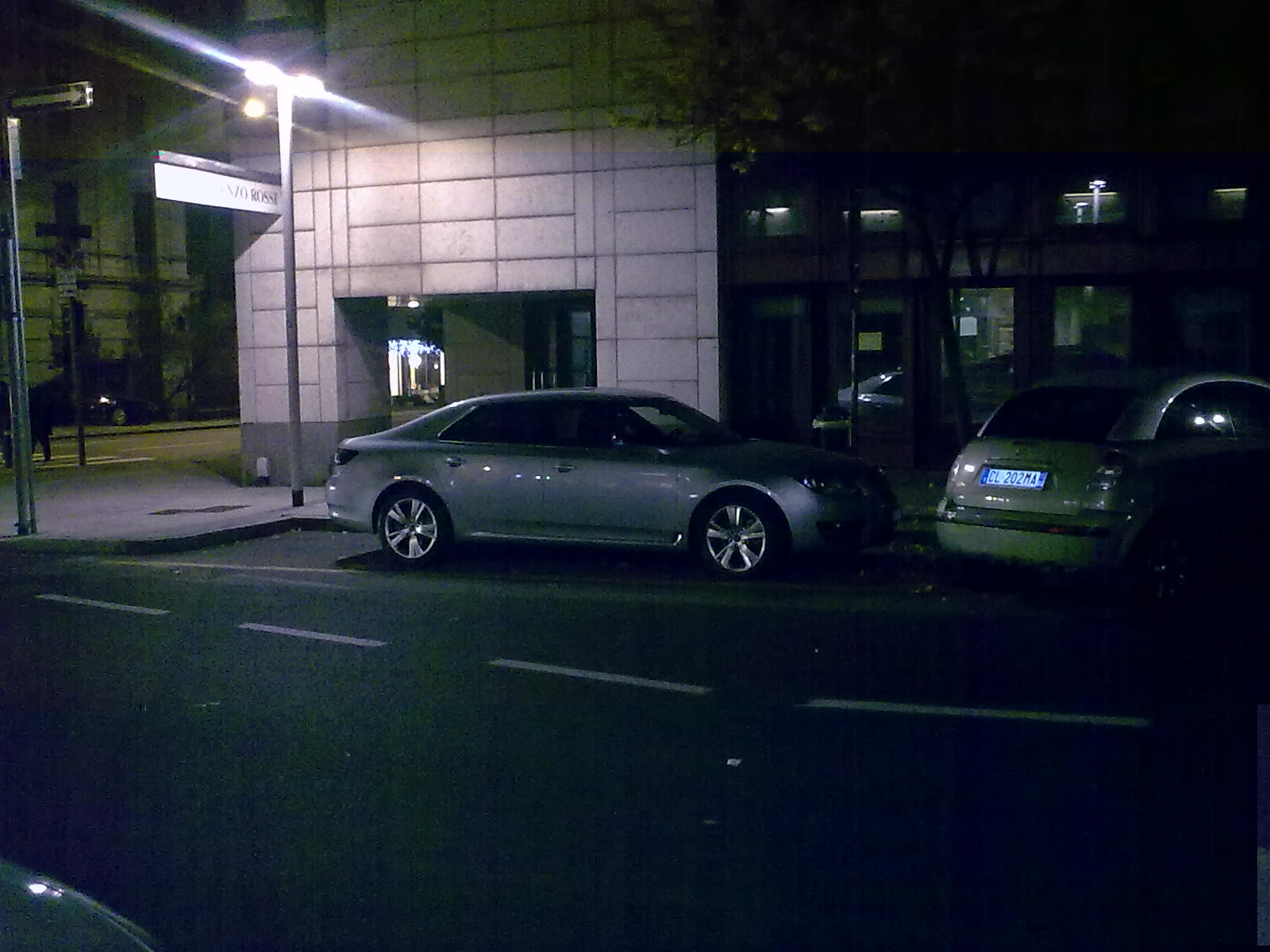 Vista una 9-5 bianca parcheggiata fuori le mura del centro di Soave (VR) giovedì sera....portatarga della Aerocar di Biondani